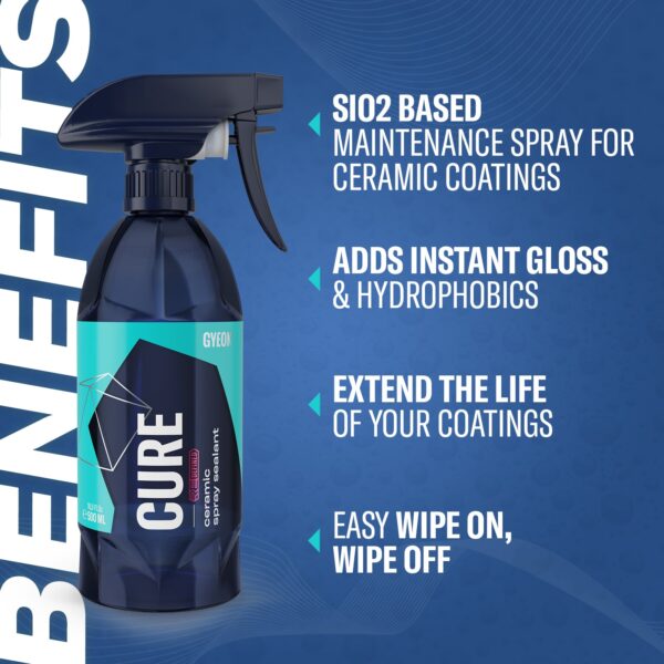 Q²M Cure Redefined will add instant hydrophobic properties to paint, wheels, glass, and trim. A strong hydrophobic effect shows that the surface is ready to repel dirt and contaminant and protect the surface.