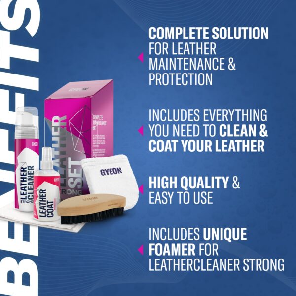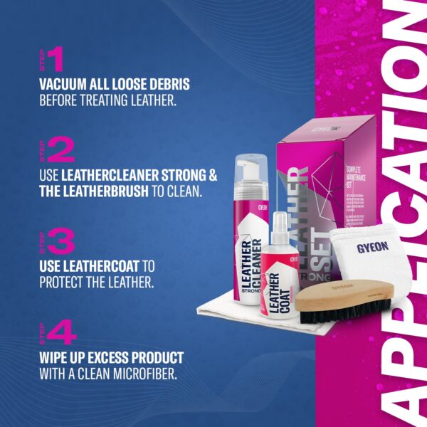 Q²M Leather Set Strong is the completeleather coatingssolution combining Q²M LeatherCleaner Strong, a powerful pre-coating leather cleaner andQ²M LeatherCoatto achieve the ideal leather maintenance & protection solution. Q²M Leather Strong ensures the removal of deep dirt, oil residue and provides best preparation for coating. Q²M LeatherCoat ensures a long lasting matte clean surface and makes future maintenance easier against contamination.